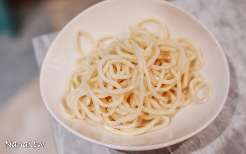 副食有米飯、冬粉、手工麵、王子麵..等六種口選,NANA選擇手工麵,手工麵可以放入青花麻辣湯底熬煮,煮大約3~5分鐘左右,吸附滿滿麻辣湯,吃起來Q彈有咬勁,又有麻辣香~