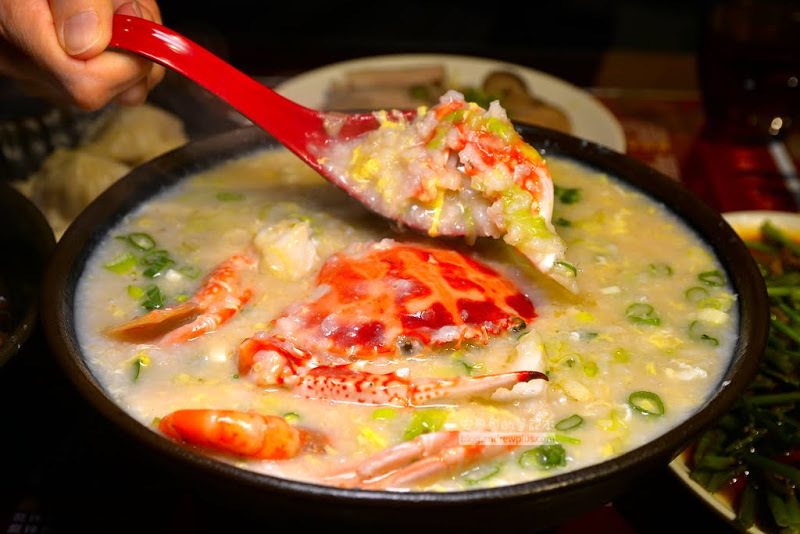 爲了讓螃蟹的肉能和粥完美結合,讓粥能夠更加鮮美,蟹鉗、蟹足都剪下來,身體也分成兩半,吃起來方便。使用飯來烹煮成的粥品,除主角螃蟹外,還加入多種海鮮食材、高麗菜絲、蛋花、鮮蝦、蛤蠣等等,整碗粥鮮味十足
