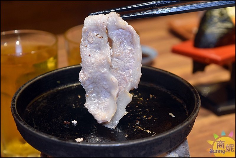 原本菜單上是澳洲巧克力和牛,因為賣到缺貨換成安格斯翼板牛,等級也不錯。安格斯翼板牛的油花分佈也很漂亮,烤過後搭配特調燒肉醬,軟嫩又香甜好好吃。