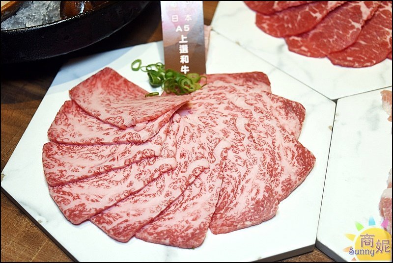 富田的肉品等級非常高,我看菜單只要699元就能品嚐A5和牛套餐,應該是台中最平價的和牛燒肉餐廳。不愧是日本A5和牛,油花非常漂亮,而且一大盤份量給得不少用料不手軟。