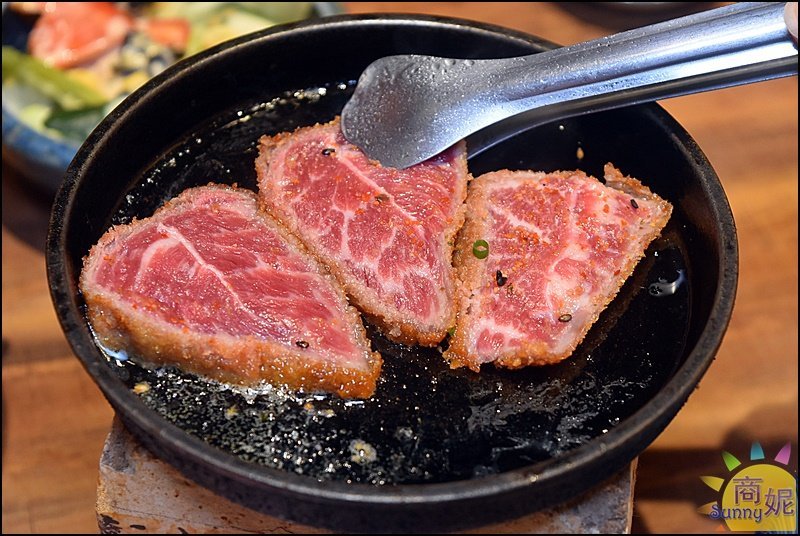 酥炸的外皮烤過後還是保有口感,炸牛排肉質非常軟嫩多汁,大口咬在嘴裡越咬越出汁,牛肉香氣十足超好吃的,富田的炸牛排真的很讚讓人一吃就愛上。