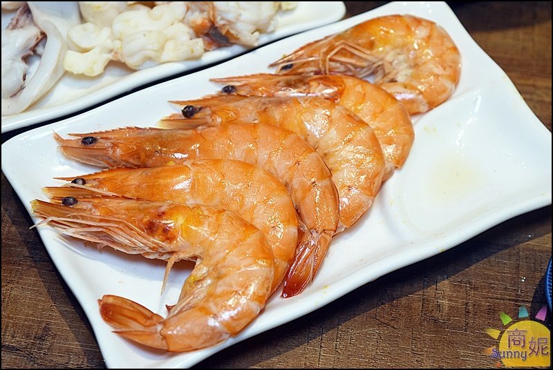 味噌湯頭先煮青菜再下龍蝦、白蝦、以及中卷就已經塞滿整個鍋面,我們一邊吃燒肉一邊煮海鮮鍋,好開心啊~