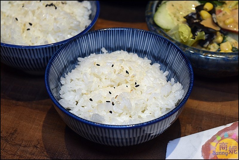 套餐主食是白飯,或者可加價選和牛滷肉飯/泡菜牛肉御飯糰/肉鬆玉米御飯糰。因為套餐的份量很多我們怕吃不完,所以沒有加價換別的。白飯配燒肉堆成丼飯也很好吃。