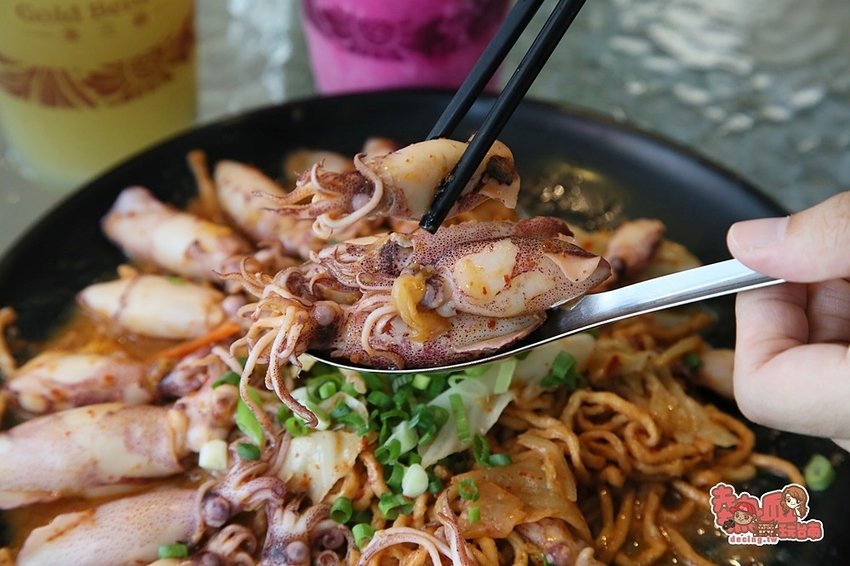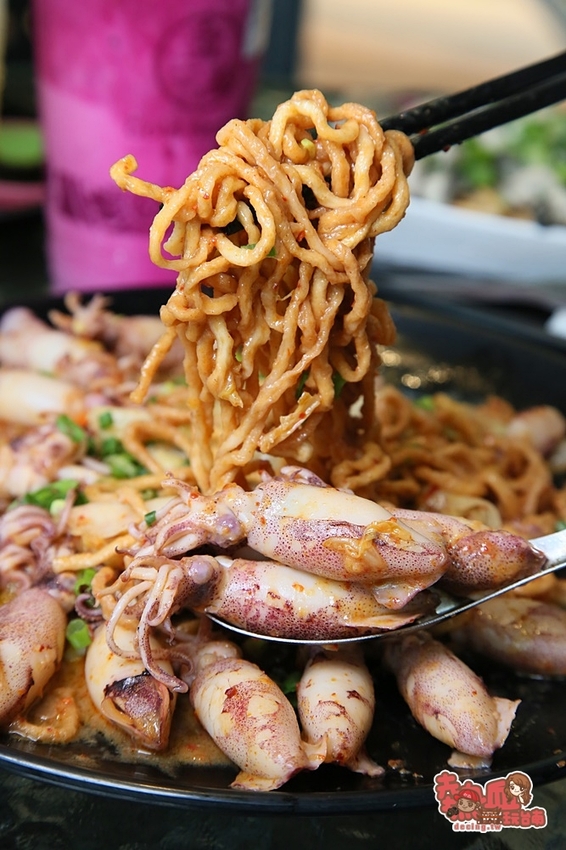 韓式泡菜風味吃起來酸中帶辣,小卷本身自帶鮮味,所以也不會被泡菜給搶走風采,意麵本身則是蠻入味的~