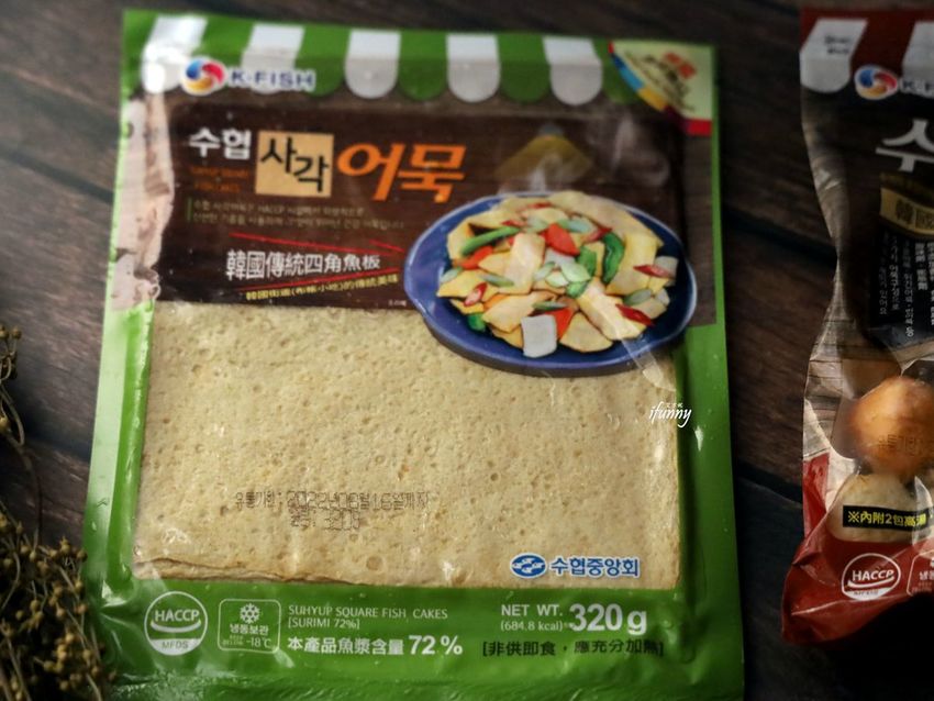 這一包的四角魚板,可依個人喜好,切成絲、長條、三角形等,就可以拿來炒或煮湯,是韓國每戶家庭中最常用到的食材之一。。