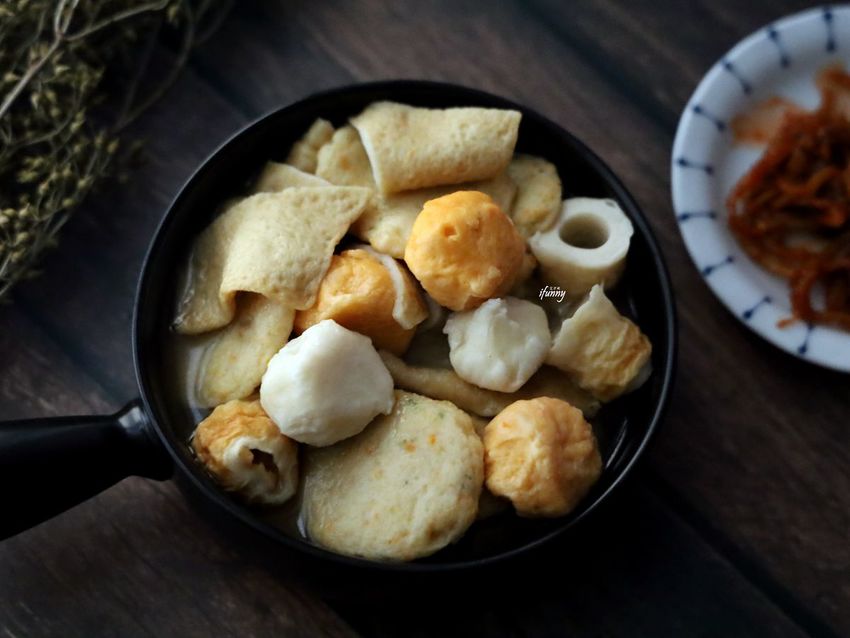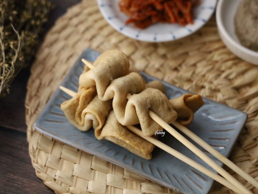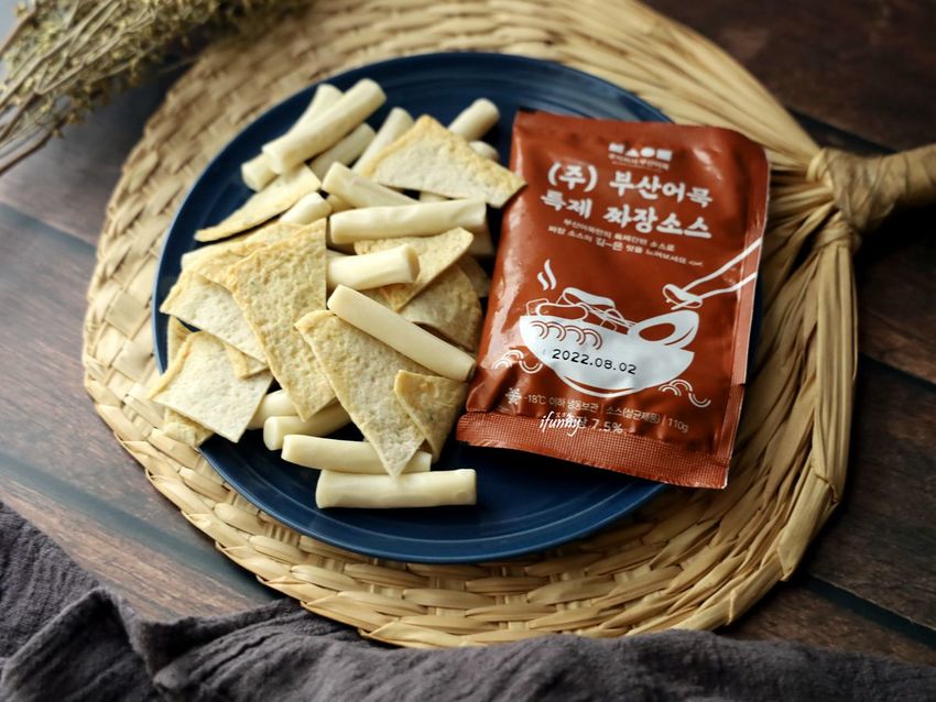 釜山魚板是使用現場急速冷凍製作魚漿,魚漿含量必須達到60%以上,再油炸成金黃色。魚板串在韓國是街邊布帳的傳統小吃,放入熱水滾至2分鐘,可依個人喜好沾醬食用。