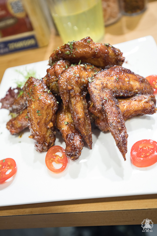 這邊的開胃菜有個很美的名字叫天際線之翼,很破壞氣氛的用直白的話說就是BBQ烤雞翅,但這邊的雞翅不簡單,先炸過再加上醬烤的口感,外頭的醬汁甜香濃郁,內頭的肉汁四溢,是近期我吃到最喜歡的烤雞翅了。