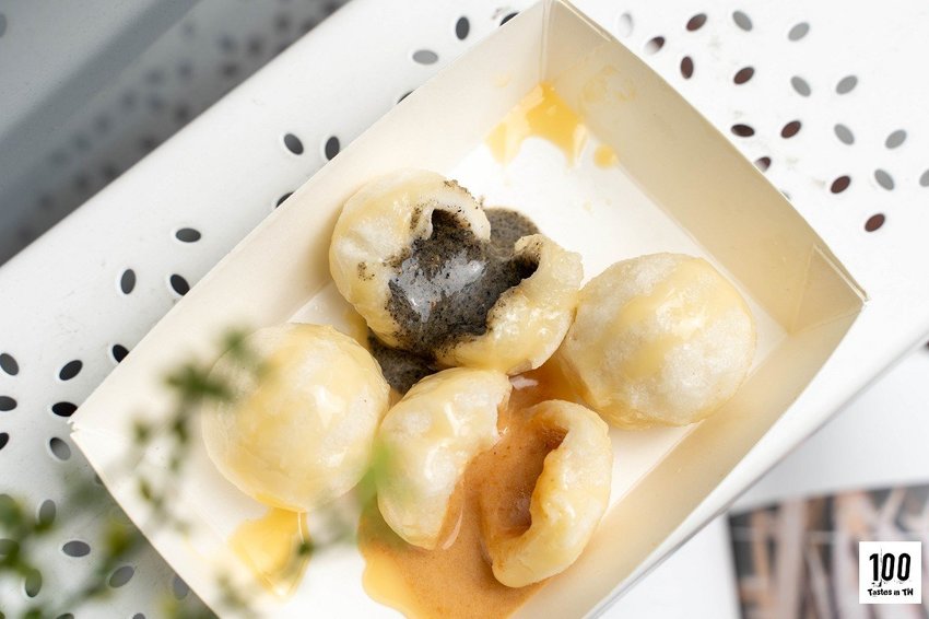 炸湯圓口感Q糯,外皮乾爽不油膩,包夾濃郁花生及芝麻內餡。吃起來偏甜,不過相當過癮。