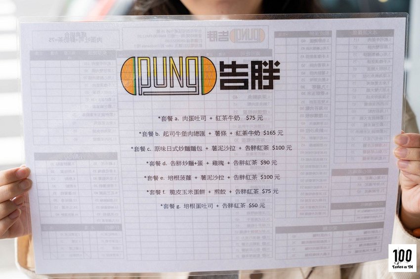告胖早午餐(惠中店)菜單
