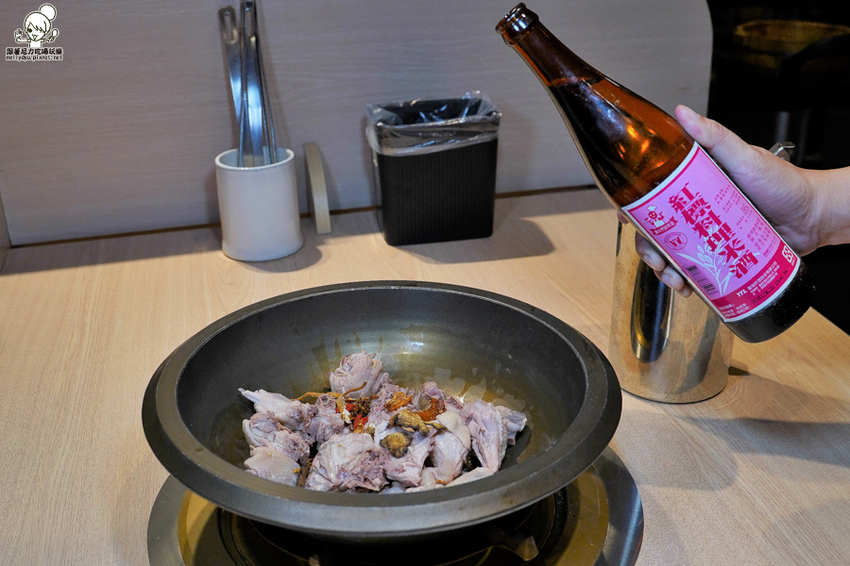 一整罐紅標米酒熬煮,讓土雞肉滲入米酒香氣、去除腥味