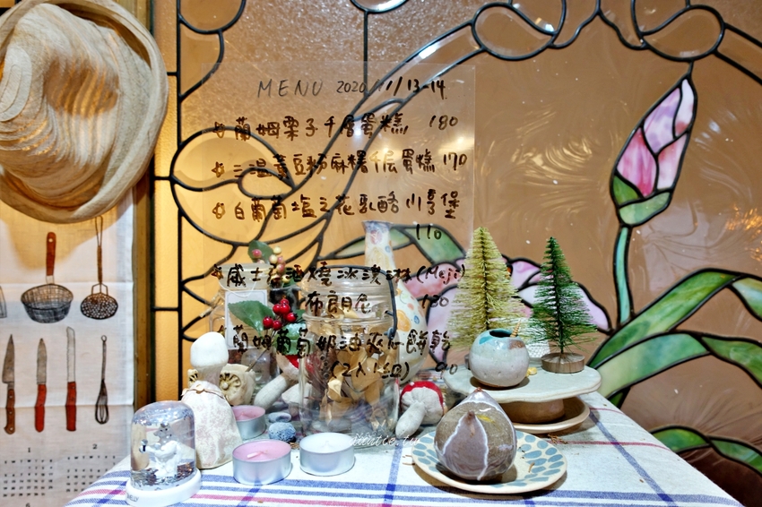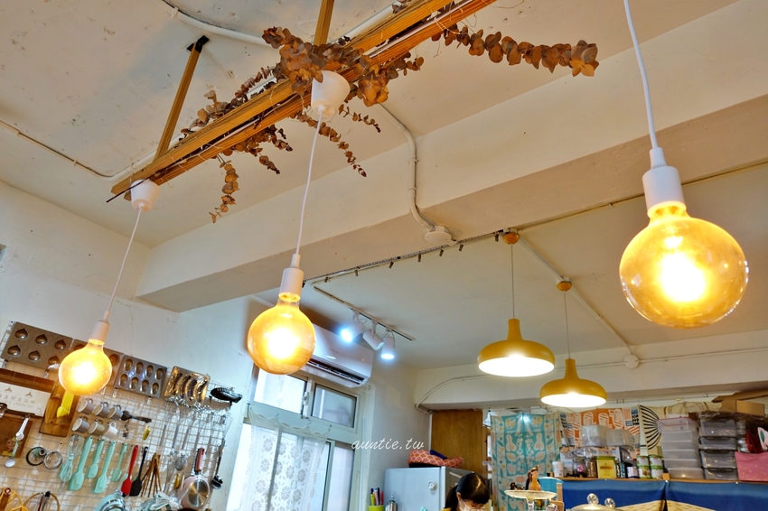 兩盞燈食試所就是工作室的感覺,小小的,牆上掛了很多烘焙工具,店裡還有一隻可愛的店貓,內用的注意事項還有一點,就是大家開門的時候要小心,以免貓咪跑出門喔!