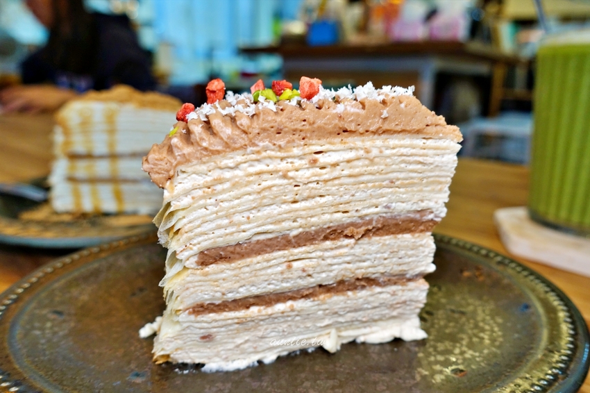 超愛這款黃豆粉千層蛋糕,第一次吃到黃豆粉口味的千層,而且千層裡還加入了軟綿綿的麻糬,多了QQ的口感,還有濃郁黃豆粉香氣,甜度同樣不會太甜,好愛這款喔!