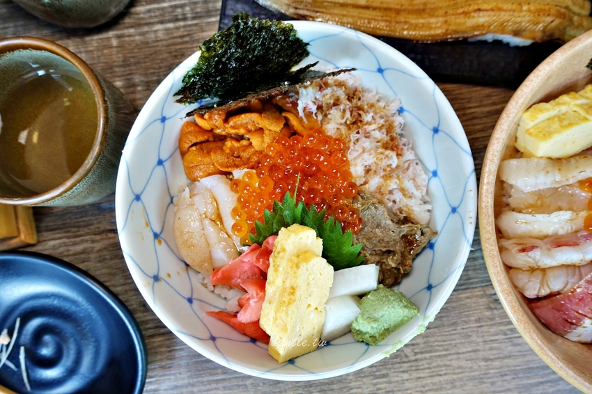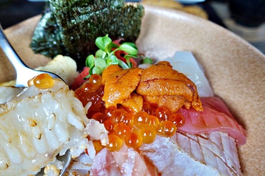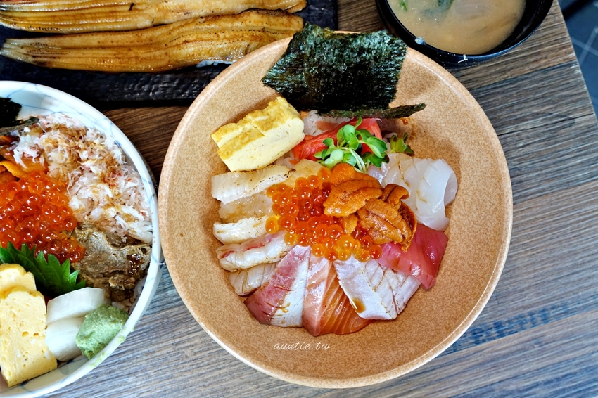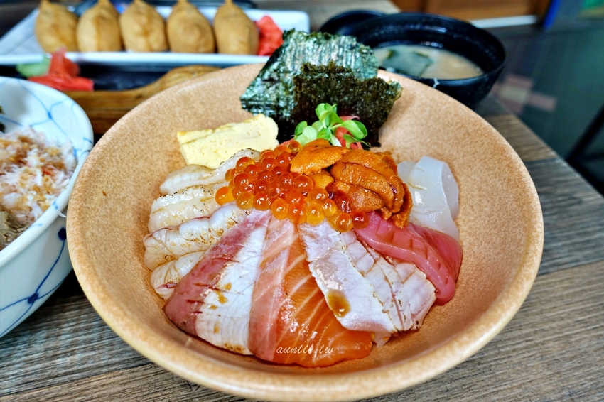 築地良味食事處海鮮丼飯價差蠻大的,最便宜的鮭魚丼180元,最貴是北海道五色丼680元,不吃生食的也有熟食丼飯可選擇。