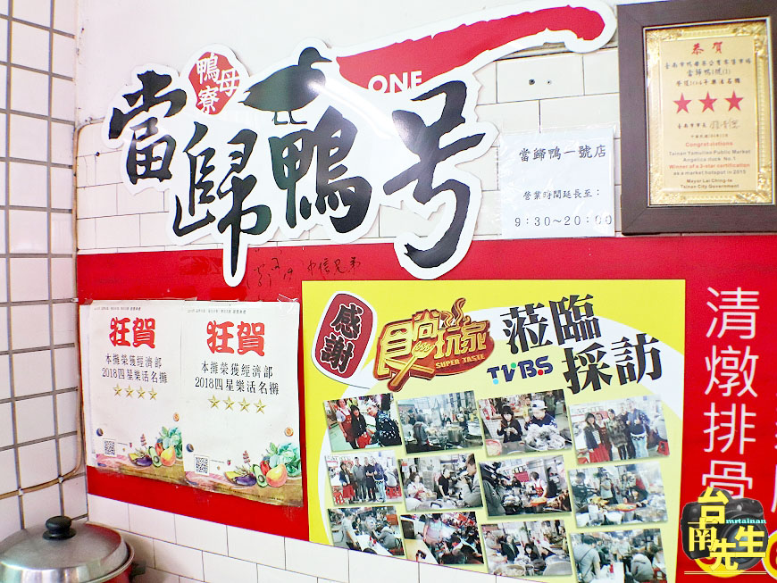當歸鴨1號不是店名,只是配合經濟部辦活動取的名字,由於他們是鴨母寮市場第1家攤商,所以就叫當歸鴨1號,一般在地人都叫他們鴨母寮當歸鴨
