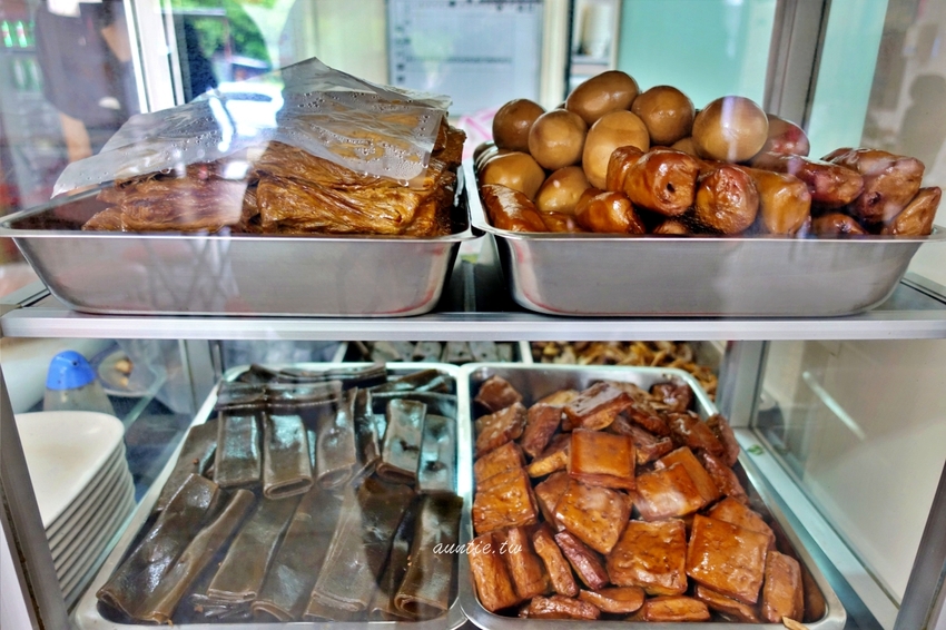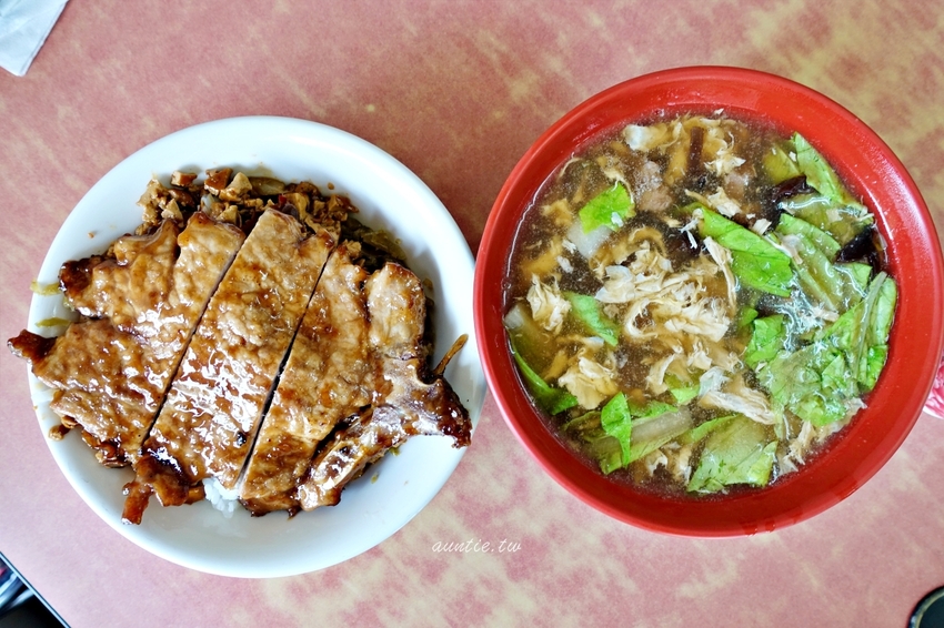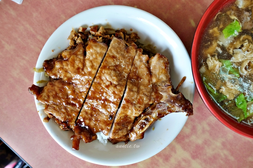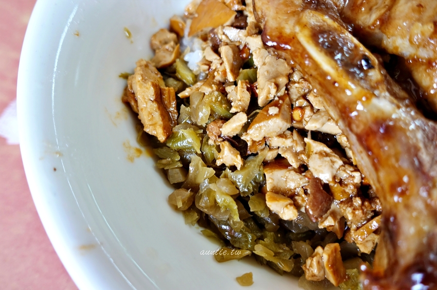 這裡的排骨飯走古早味路線,除了排骨外,配菜就是酸菜跟炸醬豆干炒豆瓣,滷排骨單吃其實味道還好,排骨蠻薄的,老實來說也沒有很突出特別好吃,不過覺得底下的飯蠻厲害的,炸醬豆干配上微甜的酸菜很搭,記得要跟白飯攪拌均勻,不然會太鹹,口味是鹹甜鹹甜的,味道偏重,真的很下飯!