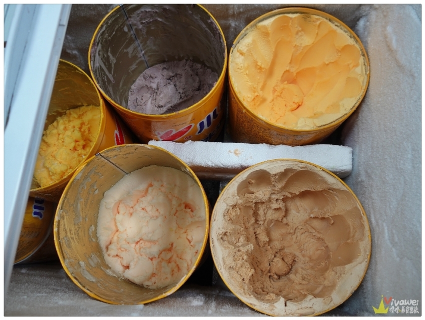 ▲小美冰淇淋的口味常常會變換!我們造訪的這天有芒果口味、焦糖牛奶口味、芋頭口味、乳酸口味、百香果口味、紅豆口味、花生口味!