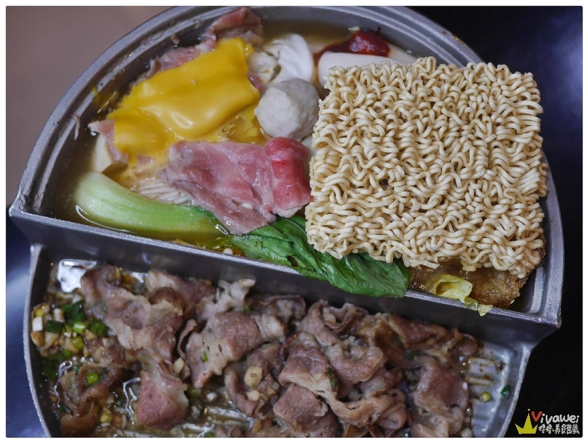 ▲我們一鍋一烤的火鍋搭配的是韓式部隊鍋!這個部隊鍋的單點價格是150元,搭配一鍋一烤250元,等於多加烤牛五花肉片只要+100元!還蠻划算的耶👍