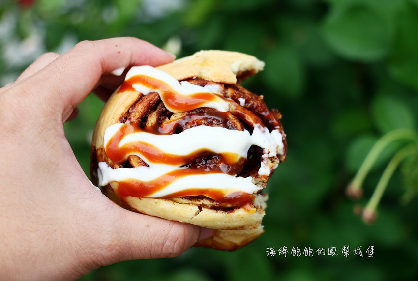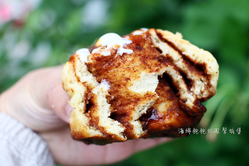 肉桂捲回烤後,外皮有一點脆脆的口感
