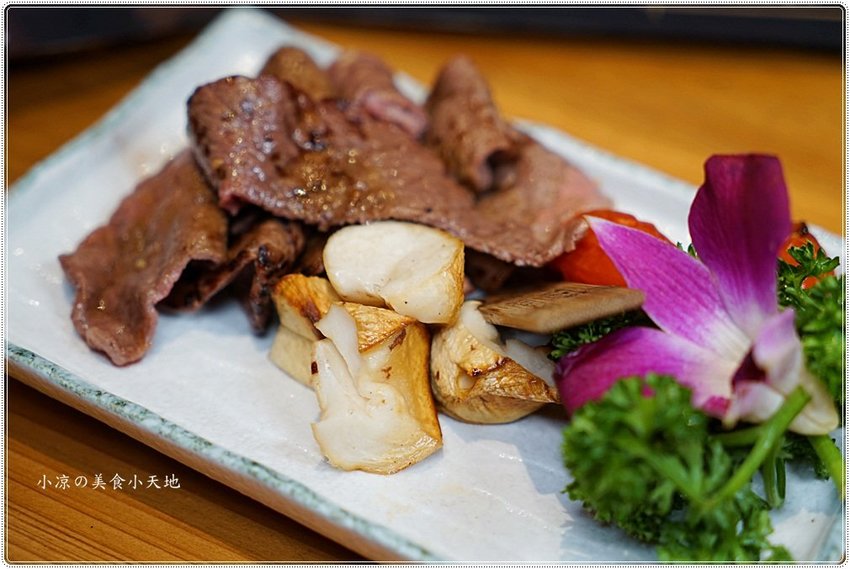 再一次考驗服務人員的炭烤功夫,畢竟牛舌真的粉厚實,等待期間小凉跟姊妹在爐邊欣賞這噴香的燒烤也是一種視覺享受。牛舌烤好後、再由服務人員幫我們將這道逆刃牛舌切成片狀擺盤上桌,準備開動!!