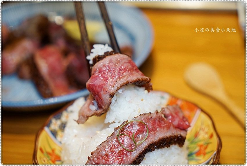 小涼發現將和牛肋眼包裹著香Q新潟米入嘴,更是邪惡!! 那甜美的油脂化入米飯中,細細咀嚼,讓人宛如置身在海灘中奔跑的幸福~
