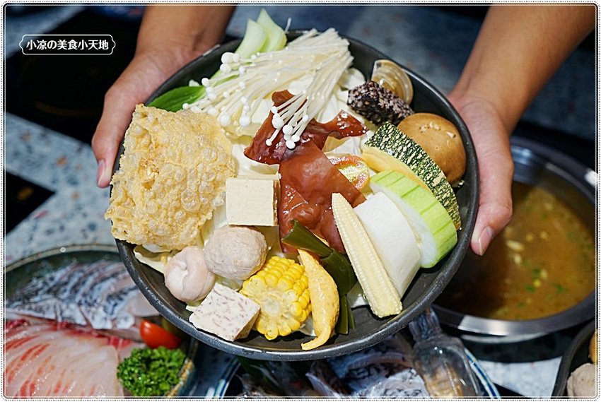 菜盤內有高達20樣食材,不外乎有高麗菜、青江菜、金針菇、木耳、豆腐、芋頭、米血、玉米筍、貢丸、豆皮、蛤蠣等相當豐富!
