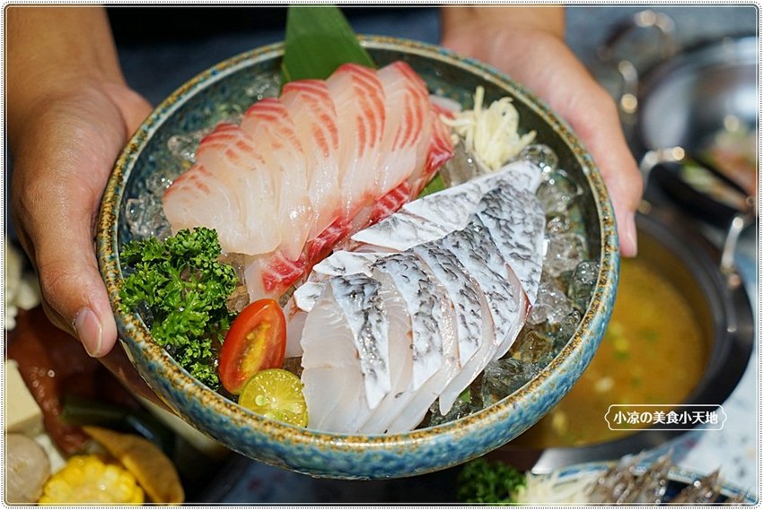 雙人絕品海陸鍋–菜盤更換鮮魚雙拼(鯛魚+鱸魚),對於不愛吃菜的朋友來說,菜盤可以更換肉品或海鮮類真的超棒!! 其他菜盤可更換的海鮮或肉品可以參考菜單喔!