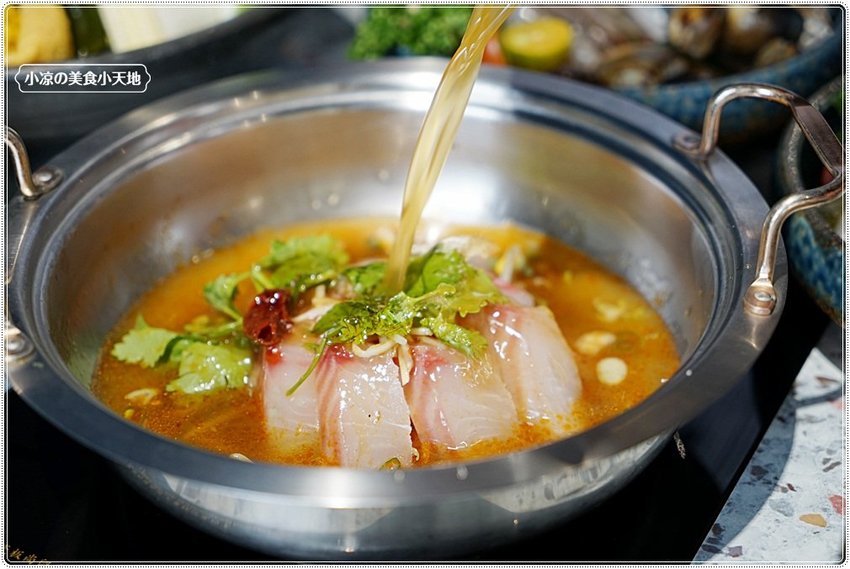 麻辣水煮魚,很酷的湯底吧!! 一般這麻辣水煮魚都是一道菜了,老闆將它延伸到湯頭內,一開始覺得好妙,吃過之後卻會令人念念不忘! 基本上會在廚房加好麻辣湯再端上來給客人喔! 小涼是想要告訴大家這道麻辣水煮魚內的魚肉給的也不少,加上有豆芽菜、薑絲、香菜提香(如果不愛香菜的朋友、記得點餐時要勾上不要香菜喔)