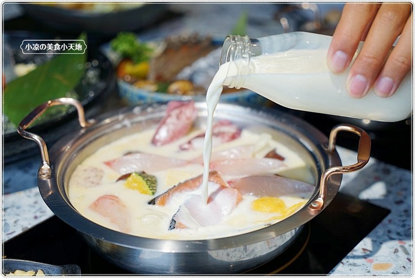 在牛奶鍋內滾煮的鮭魚片吃起來豐腴滑順、不乾澀的風味,無刺吃得更開心!