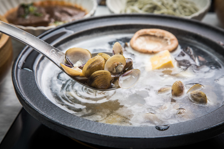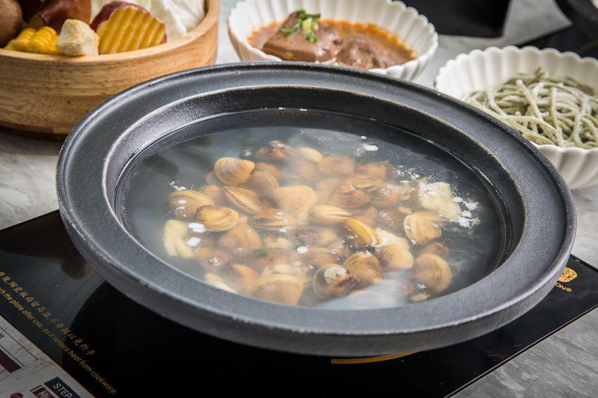 活力黃金蜆湯底,光看鍋中滿滿的黃金蜆,湯頭多鮮可以預見,經過慢煮烹調,鍋裡的蜆也開始一顆顆打開,殼中透著肥美鮮嫩的蜆肉,可以先試喝一點湯頭,鮮到一個不行,入口充滿了蜆的鮮味,即使沒有經過調味,光是蜆本身烹煮出來的味道就夠了