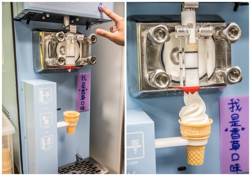 飯後甜點來支霜淇淋吧!嗑肉石鍋是採用自動霜淇淋機,完全不用自己擠,按一個按鈕就擠出超完美的霜淇淋!
