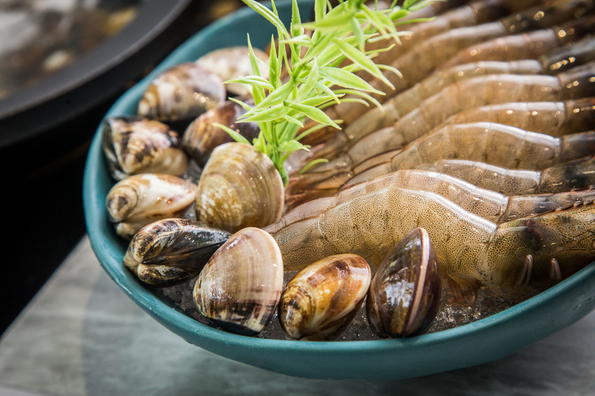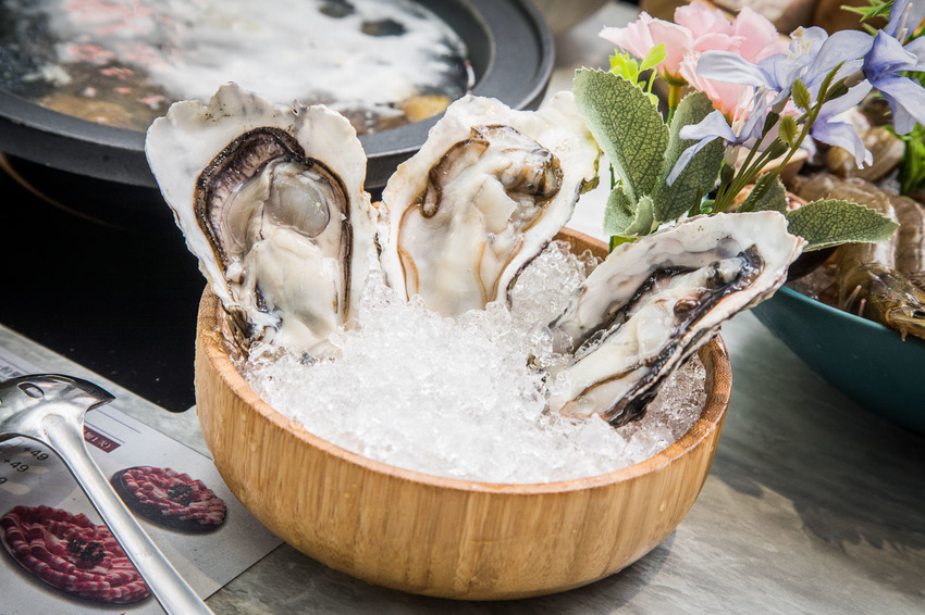 碩大的帶殼生蠔下鍋清涮,入口鮮甜的海鮮滋味在口中噴發,好吃!