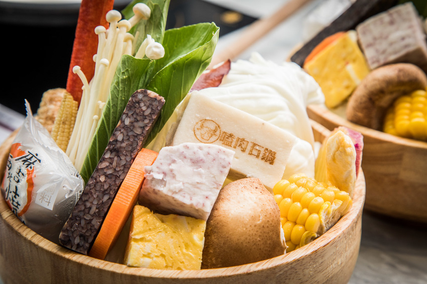 菜盤也不馬虎,食材都整齊擺放,五顏六色好像彩虹一樣,豆腐還烙上嗑肉石鍋的字樣,裡面還有嗑肉石鍋獨門嚴選火鍋料,第一次看到這麼美的菜盤!