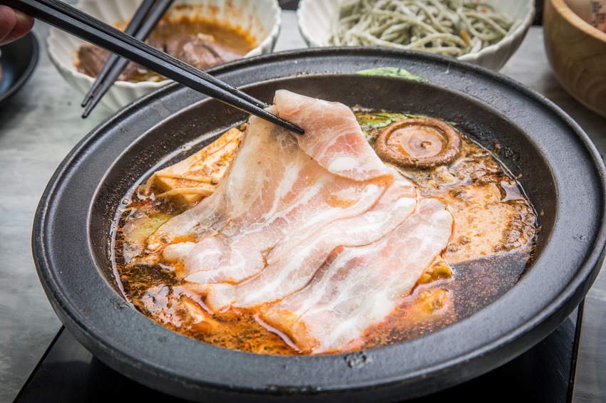 頂級松阪豬,松阪豬的肉色超粉嫩,涮煮到肉色轉白就可以吃囉,因為厚切,可以完全展現松阪豬紮實Q脆的口感,入口盡是滿滿鮮甜的肉汁