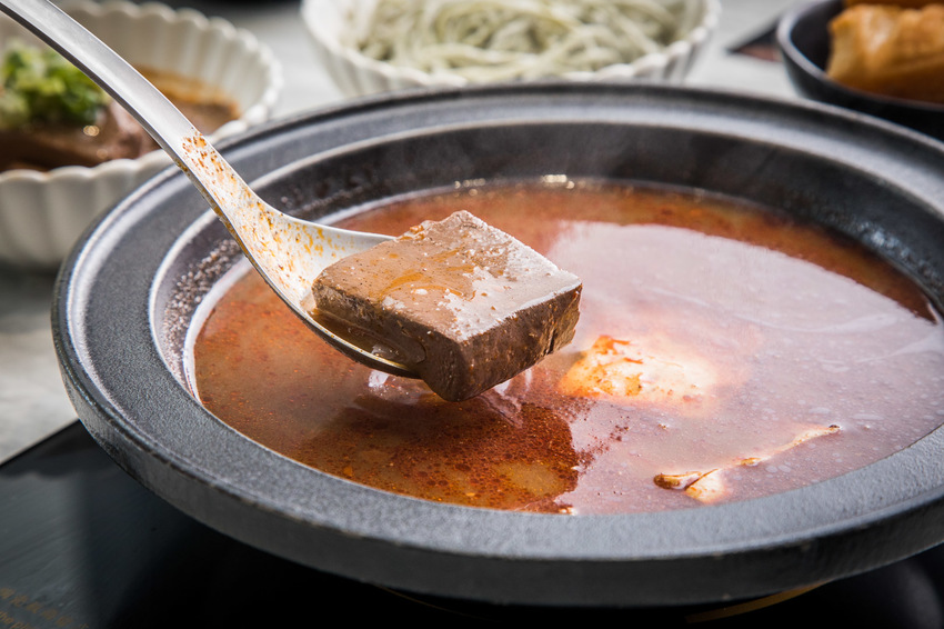 鴨血不夠吃也可以另外單點招牌麻辣鴨血,燉煮的相當入味,鴨血吸飽了麻辣鮮香的湯汁,因為是熟食,也可以點來當開胃菜吃,頗不賴