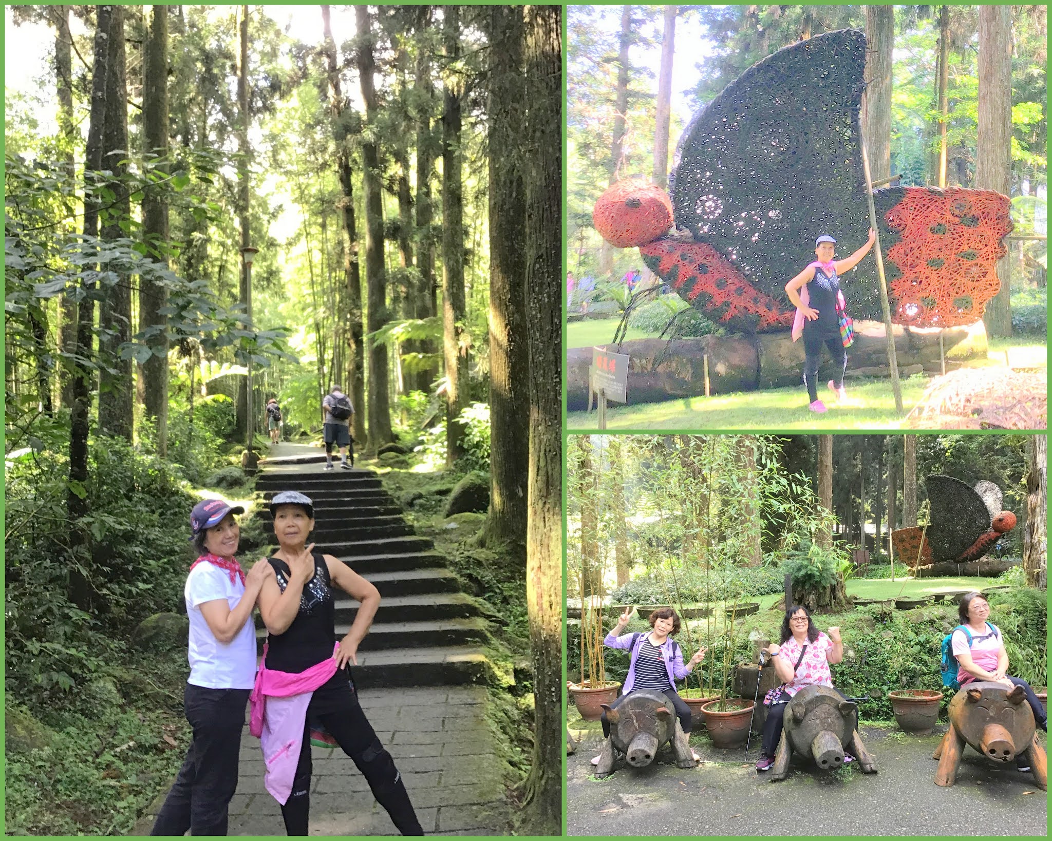 [溪頭自然教育園區],猶如一座大自然教室,不但可徜徉在大自然、沐浴芬多精,享受綠意盎然的青翠山林,那股飄渺、自在、與風在對話的閒適,多麼令人神往又陶醉~[溪頭自然教育園區]位於南投縣鹿谷鄉鳳凰山谷,園區三面環山佔地廣闊,海拔在800~2000m之間,有紅檜、銀杏、扁柏珍貴樹種,還有上千種的草本植物。園區內設有多條森林步道與登山步道,團隊選擇較輕鬆的,讓大家悠閒又輕鬆的漫步其中~~大學池旁的廣場,也設有很多大型的裝置藝術,可供遊客拍照之用,團隊做遊戲活動也很讚!綠意青蔥的林木直挺挺地矗立著,彷彿進入森林浴般如沐春風;周邊還有許多可愛、俏皮的裝置藝術,團員們輪番拍得不亦悅乎。大夥兒無論走在竹林中、或經過百年銀杏林,對我們這些久居都市的市民來說,沿路盡是美景;雖非假日遊客仍絡繹不絕~~最有趣的是園區內的松鼠,可與遊客共享美食,完全沒有驚恐、逃脫、躲避之意;還挺喜歡親近遊客,分享麵包、饅頭、堅果零食等...[彩虹橋步道]因這條步道較隱密,因時間關係,我們僅老遠的拍攝彩虹橋的照片過癮啦!!溪頭[大學池]是遊樂區內著名的景點,拱型竹橋和池中倒映,竹橋遠景抑或是拱橋上一字排開;都是很好的拍照取景的紀念。路過草坪區-露天音樂會場,綠草如茵景緻優美,大草坪上是最佳看台;亦是各種大型戶外表演的絕佳場所。草坪區有涼亭、桌椅可休憩、用餐。園區內的涼亭休憩處也不少,唯獨鍾情這款亭頂長滿蕨類植物的涼亭;特別感受於大自然之美。[空中走廊]-有開放時間(早上8點~下午5點),和人數限制;年輕時來過兩次,這兒都還沒影呢,對我而言就是新的景點,非看不可~[空中走廊]建有觀察樹冠層生態的空中走廊;全長220公尺,高處離地面22.6公尺,約有7層樓高。走在[空中走廊]上,視覺感受很特別,橋挺堅固晃動不大,行走間不用太過擔心;團員們還可幫忙互相拍照,留作紀念。只可惜這趟溪頭之旅,沒看見著名的神木,這棵約有2000多年樹齡的神木;2016年因為豪大雨導致土質疏鬆,高46公尺的紅檜巨木以倒塌啦!!南投景點溪頭自然教育園區中壢社大周四趴趴走大學池空中走廊創作者介紹松葉牡丹
