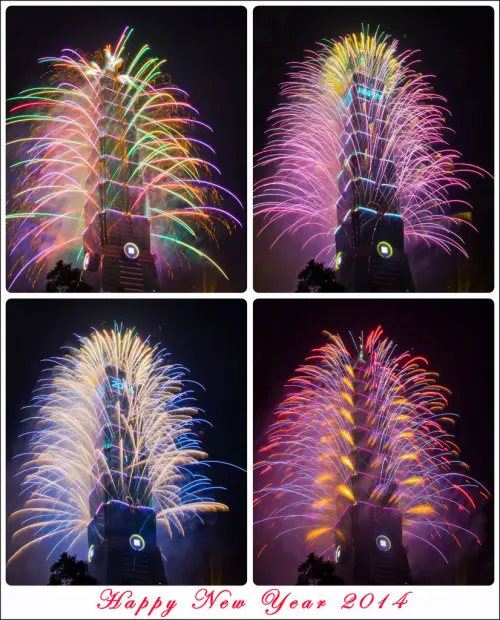 煙火秀完101變成整棟金黃色加上各個樓層紅色的色調,意謂著2013年新年快樂