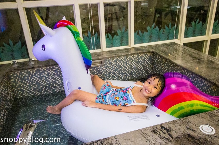 對可樂娜來說也能當小小戲水池,一旁還有獨角獸造型泳圈,