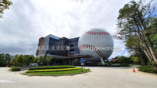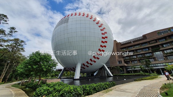 館外設計頗具特色,有一半為白色巨大球體建築,旁邊還有豎立大大的球棒,完全呼應飯店品牌特徵。球體內則是「棒球名人堂」主題館,也算是文物館,共四層樓(嚴格來說有七層樓高),慢慢玩可以待上一整天,這部分另一篇再介紹。