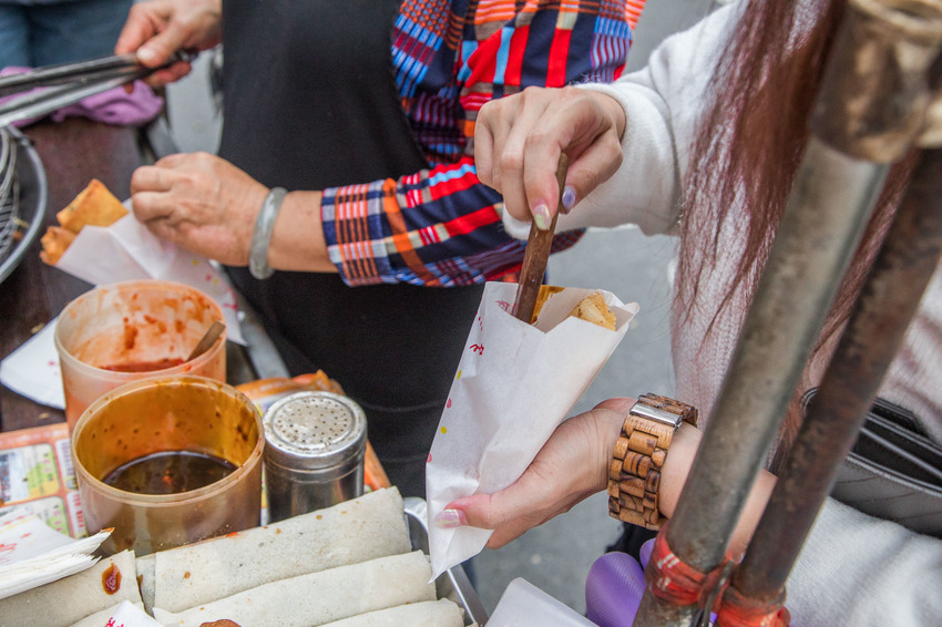 我們也沒有記單價,炸春捲/蝦餅/蘿蔔糕/黑糖糯米糕整套各一買起來總共才95元,如果有網友知道單價各是多少歡迎跟我們說一下,這裡的調味自己來,如果要帶走建議灑胡椒就好,回家吃還是酥脆的,沾醬難免會軟掉
