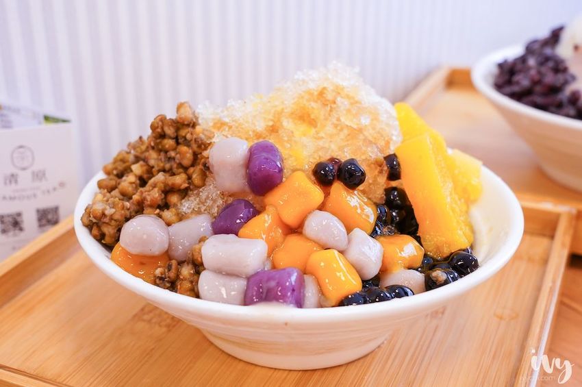 身為芋頭控的艾薇看到滿滿一碗的芋泥和芋頭,怎麼可能放過呢!芋泥打得非常綿密滑順,還帶有微微的甜度,芋頭丸中還吃到的芋頭本身的顆粒感,入口可以感受到濃郁的芋頭香氣,扎實飽滿,可說是一碗大人小孩都喜歡的冰品。