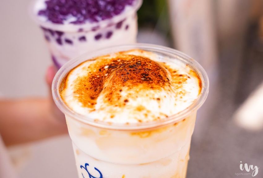 岩漿黑糖珍珠,一開蓋就能看到炙燒過的黑糖奶蓋,先吸一口綿密扎實,底層的手炒黑糖珍珠,黑糖香氣與甜度雖高,但與鮮奶交織在一塊,滿滿的黑糖與奶香,相當迷人,再加上嚼感豐富的珍珠,越喝越涮嘴。