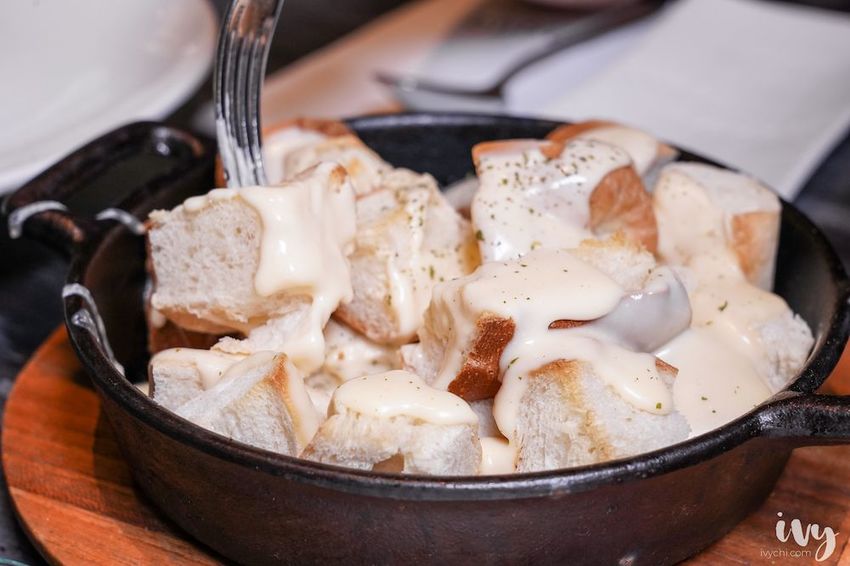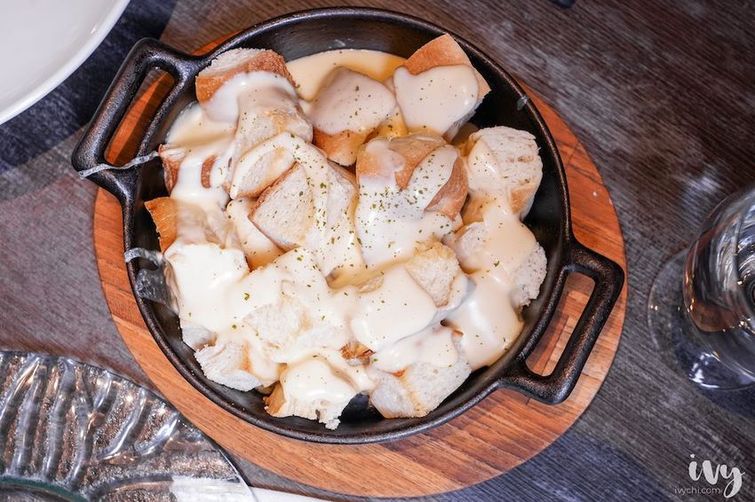 起司控必吃!招牌火山起司麵包可是「aqua水相餐廳」人氣品項,在經典套餐內必附贈的一道菜色,一份可以4人一起享用,上桌就能聞到香濃起司,讓人口水直流啊~