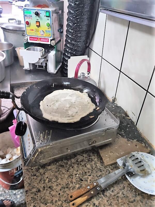 這是傳統的粉漿蛋餅,看著白白粉漿慢慢凝固的樣子,怎麼莫名覺得療癒!