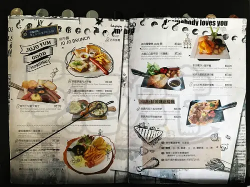 翻面是編號1-4的濰克小西餐,價格由$159元~$269元之間,
