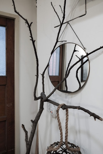 毛玻璃與鏡面,木門與樹枝,