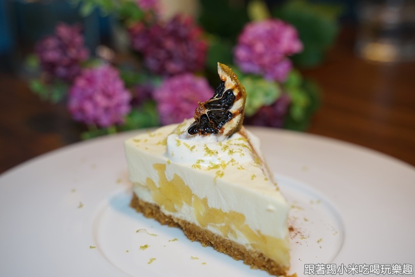 店家自製蛋糕(不同時間提供不同口味,點餐前可以先詢問店員),放上自製風乾檸檬片再撒上檸檬皮屑,使蛋糕多了檸檬的香氣,蛋糕體本身挺綿密的,奶油並不會太甜,整體來說甜而不膩