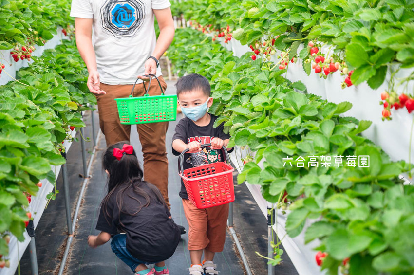 走進草莓園裡面,有一種看不到果園盡頭的錯覺,六合高架牛奶草莓園是大湖地區佔地最廣闊的草莓園,還有這裡的最大的特色是喝牛奶長大的牛奶草莓,在施肥的時候使用牛奶酵素,難怪草莓每顆看起來都好飽滿、好鮮嫩多汁,而且結實纍纍。
