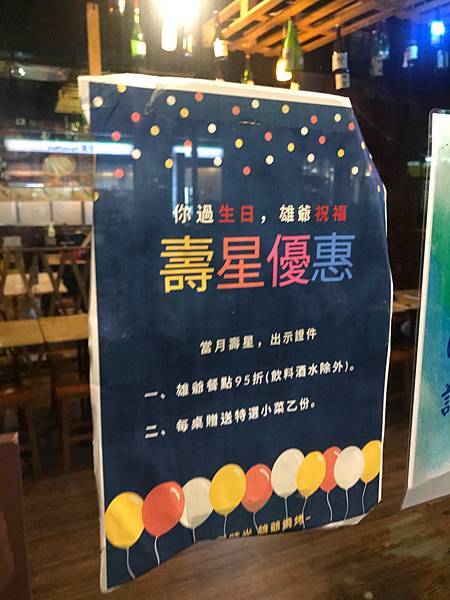 👛優惠: 加入LINE會員酒類最低買一送一優惠、當月壽星95折+每桌送一份小菜