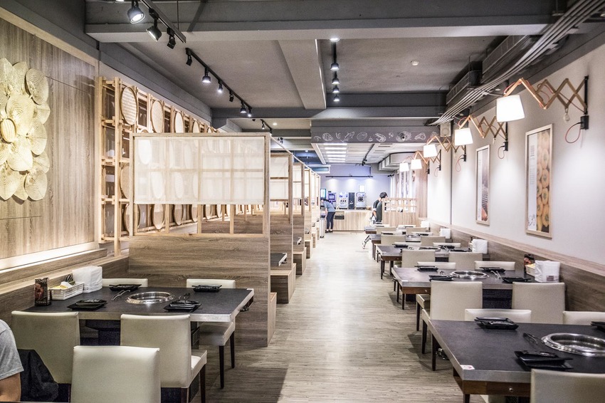 超夯の燒肉-中華店的用餐環境,挑高的天花板讓人用餐毫無壓力,後方左側座位區設計成日式包廂的造型,用餐空間走溫馨暖色調木質的日式裝潢,雖然座位數沒有林口店這麼多,但用餐還是很精緻且寬敞