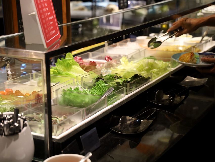 特別的沙拉區,備有火腿、起司等,可以自製三明治。
